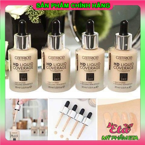 Kem nền kiềm dầu Catrice HD 24h Liquid Coverage Foundation che phủ hoàn hảo 30ml