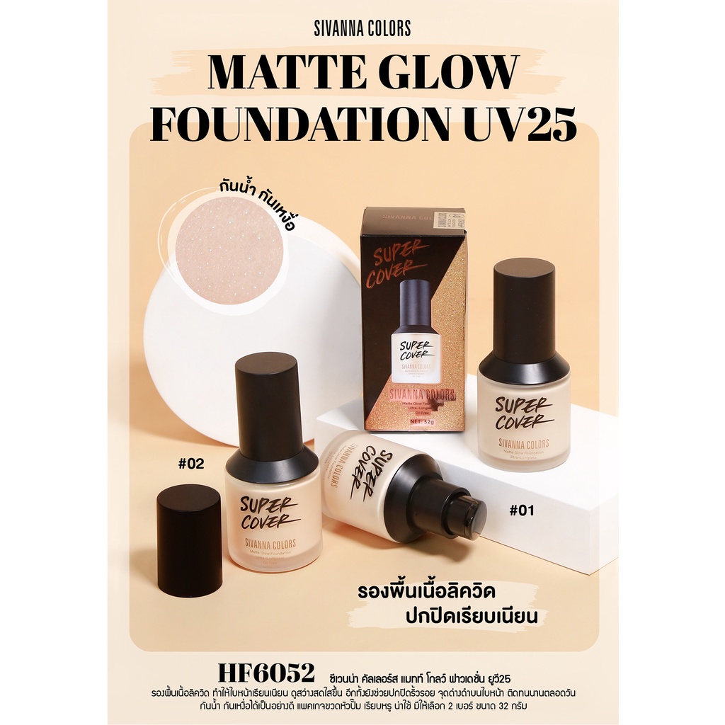 Kem nền che khuyết điểm mỏng nhẹ lâu trôi thẩm thấu nhanh HF6052 Sivanna Colors Super Cover Matte Glow Foundation