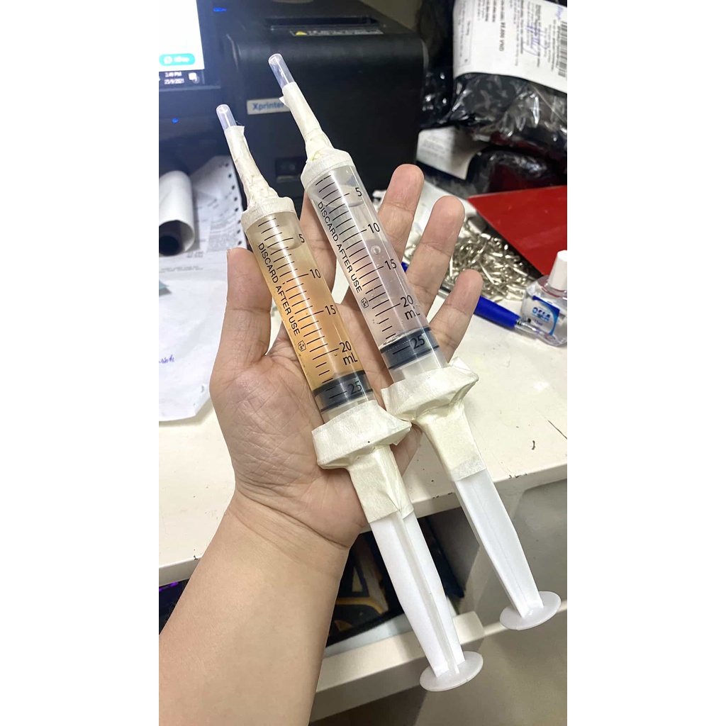 Keo 2 thành phần AB dùng để phủ chỉ khoen cần câu, giúp cố định khoen dựng cần Và tạo độ bóng, giúp trang trí, làm đẹp cần câu Cách dùng: pha A và B theo tỉ lệ 1:1 , trộn đều lên, chờ khoảng 1ph cho tan bớt bọt rồi dùng cọ quét lên chỉ, điều chỉnh sao cho đẹp, sau 4 tiếng là khô cứng * Lưu ý: Nên pha mổi lần 1:1 hoặc 2:2, xài hết thì pha thêm, tránh TH xài ko kịp keo bị khô kẹo khó Sử dụng, hoặc xài ko hết bị hư 👉 Giá: 50k/ 1 phần (gồm 2 ống tiêm, mổi ống 10cc) => làm dc 3-5 cây