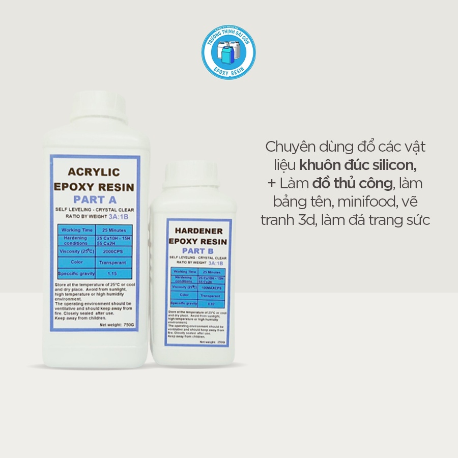 Keo Epoxy Resin Clear Keo AB Trong Suốt Đổ Nhựa Làm Khuôn, Đổ Bàn Gỗ ,Đổ Keo Làm Móc Khóa