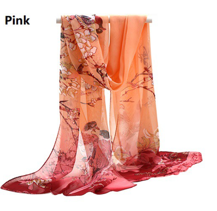 Khăn Choàng Cổ Bằng Voan In Họa Tiết Hoa Thanh Lịch Thời Trang Dành Cho Nữ