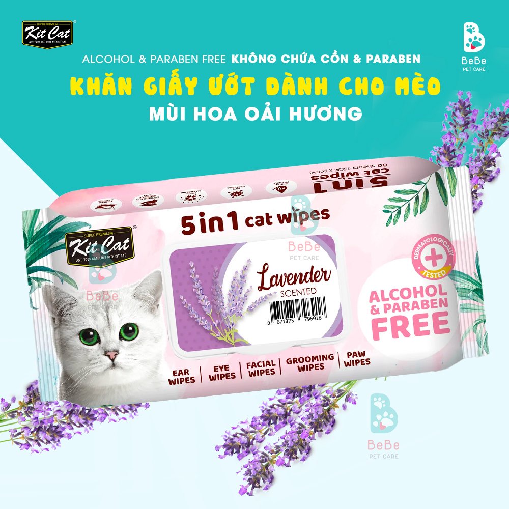 Khăn Giấy Ướt Đa Năng Kháng Khuẩn KitCat 5n1 - Lau Vệ Sinh Hoặc Tắm Khô Cho Thú Cưng - Túi 80 Miếng