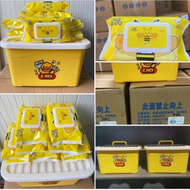 Khăn giấy ướt con vịt vàng thùng 10 gói hàng nội địa Trung kháng khuẩn tặng kèm thùng đựng mini