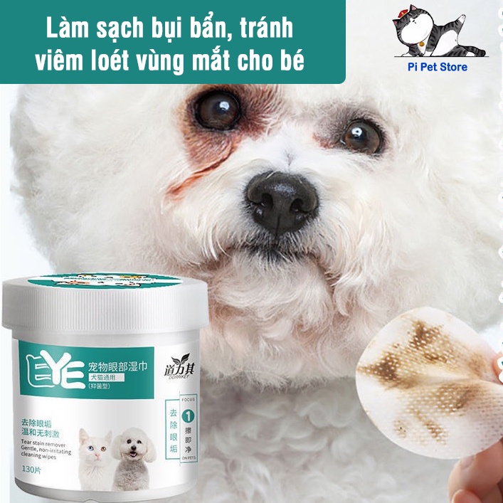 Khăn lau mắt cho chó mèo, miếng vệ sinh mắt cho chó - Hộp 130 miếng tiện dụng - Pi Pet Store