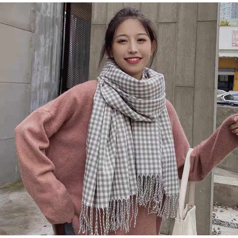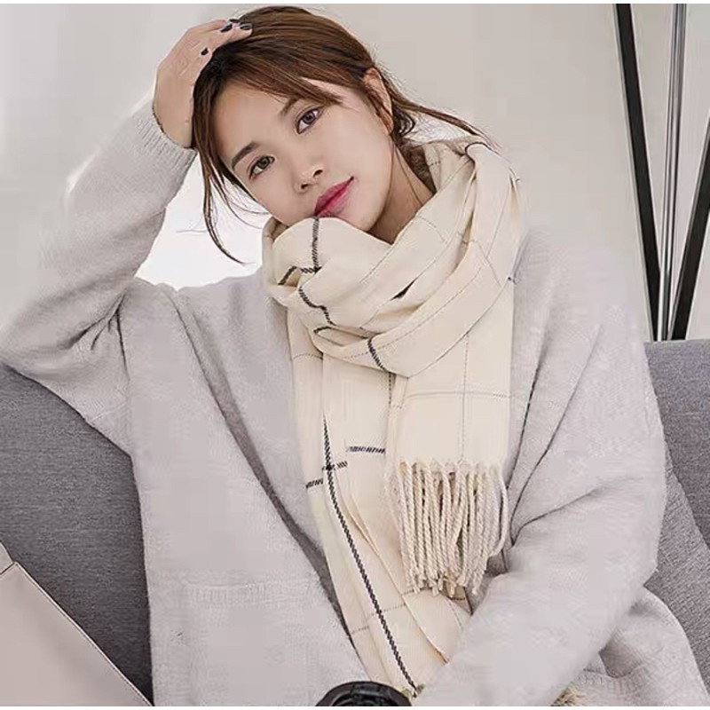 Khăn Choàng Cổ Vải Lông Cừu skjk Màu Trơn Dày Dặn Giữ Ấm Kiểu Dáng Đơn Giản Cho Nữ