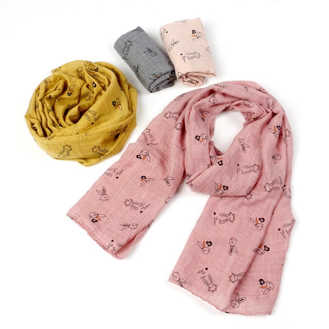 Khăn quàng cổ xô đũi cho bé họa tiết thỏ con ngộ nghĩnh, nhiều màu sắc, kích thước 140 x 30 cm