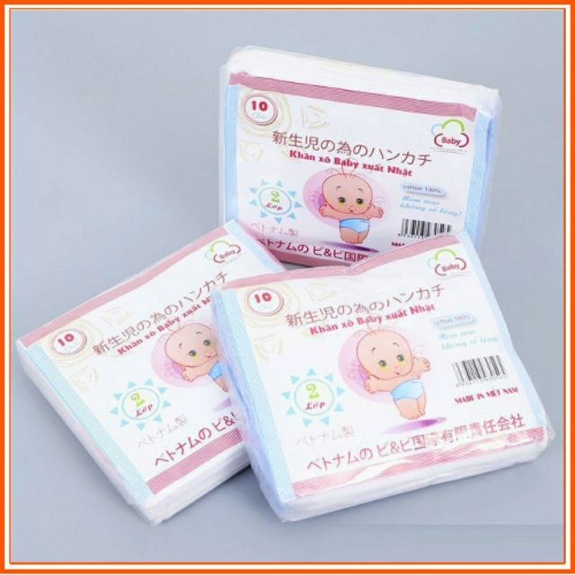 Set 10 khăn xô sữa xuất Nhật trắng mềm mịn 2 lớp thấm nước cho bé sơ sinh kích thước 30*30cm