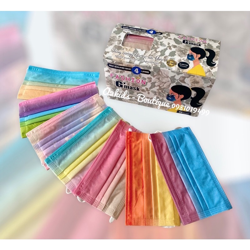 Thông tin sản phẩm: * Tên sản phẩm: Khẩu Trang Cao Cấp 4 Lớp Họa Tiết Cầu Vòng Thời Trang FASHION GARCOTEX MASK * Xuất xứ: Việt Nam * Đơn vị sản xuất: • Công ty CP Dệt May Nam Việt - Số 3 Ngõ 785 Nguyễn Khoái, Phường Thanh Trì, Quận Hoàng Mai, Hà Nội • Số công bố hợp quy 0105319925/NV/0108143074 Đặc điểm nổi bật: _Khẩu trang Garcotex 4 lớp cao cấp _Họa tiết phong phú, thời trang _Bỏ túi tiện lợi, lịch sự _Thanh nẹp mũi dễ định hình, giúp cố định khẩu trang và tạo độ kín ôm trọn khuôn mặt. _Dây đeo chắc chắn, độ co giãn tốt tạo cảm giác thoải mái khi sử dụng. Bảo quản nơi khô ráo, thoáng mát. Quy cách đóng gói: Hộp 50 cái - Chia 5 túi, mỗi túi 10 cái Màu sắc: Màu sắc Rainbow phong phú với nhiều màu sắc chọn lọc phù hợp với nhiều trang phục Phù hợp: Người lớn (Nam & Nữ) SẢN PHẨM ĐỘC QUYỀN XUẤT KHẨU ĐI SINGAPORE VÀ MALAY