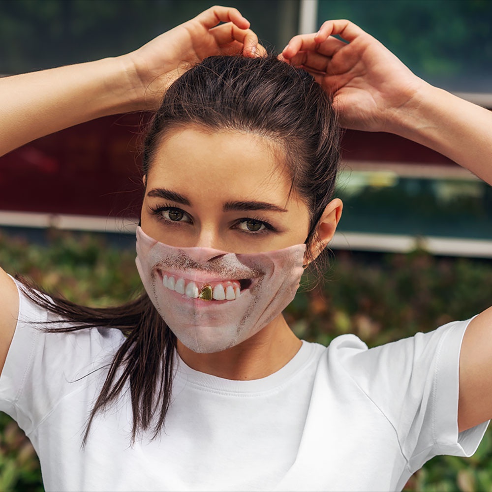 Khẩu trang mặt người cười in hình miệng hài hước vui nhộn ,chất liệu vải 2 lớp kháng khuẩn