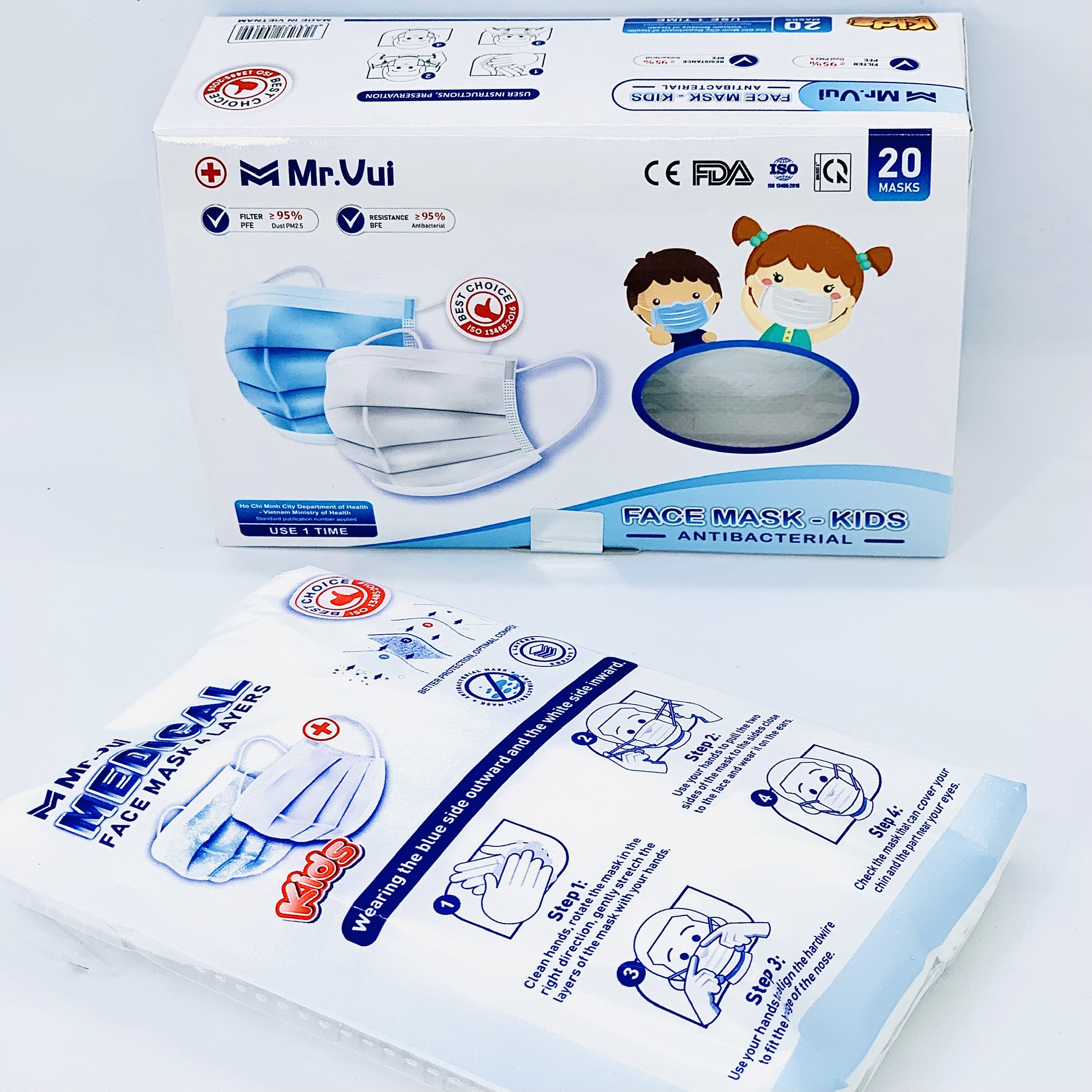 KHẨU TRANG Y TẾ 4 LỚP Mr.VUI - VẢI KHÔNG DỆT KHÁNG KHUẨN – HỘP 50 CÁI - MÀU XANH