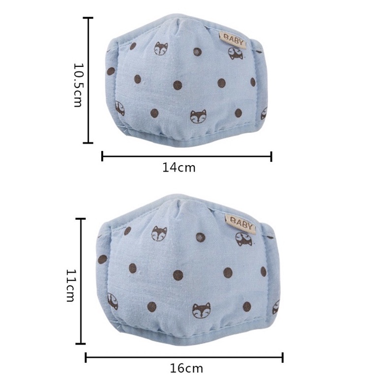 Khẩu trang xô cho bé 3D vải xô 4 lớp kháng khuẩn chống bụi, có nút chỉnh quai đeo 📌 Thông tin sản phẩm: ➖ Tên sản phẩm : Khẩu trang cho bé. ➖ Chất liệu : vải xô. ➖Độ tuổi thích hợp : + Size S : 0 - 3 tuổi + Size M : 3 - 6 tuổi ➖ Kích thước : + Size S : 14 x 10.5cm +