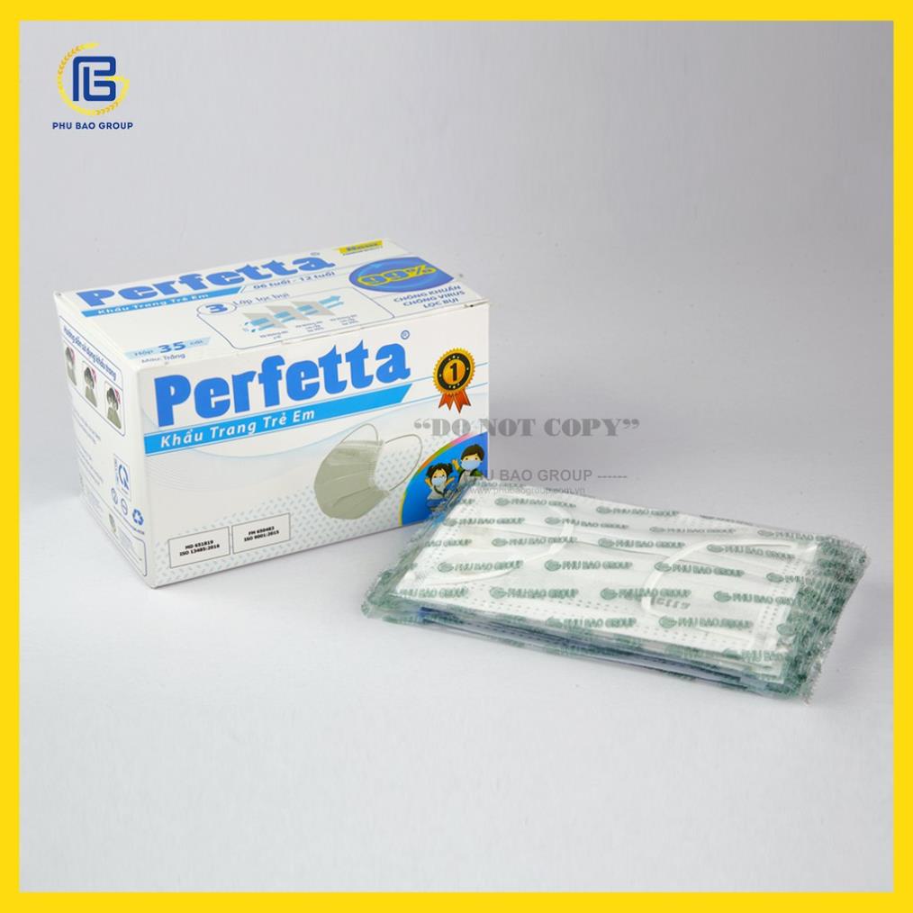 Khẩu trang y tế 3 lớp Perfetta Trẻ Em Trắng hoặc Xanh 35 cái đóng gói từng cái, là người bạn đồng hành không thể thiếu bảo vệ bé yêu của bạn tránh những tác hại từ môi trường. Với thiết kế 3 lớp lọc cùng chất liệu vải không dệt kháng khuẩn giúp bé phòng tránh bụi bẩn,