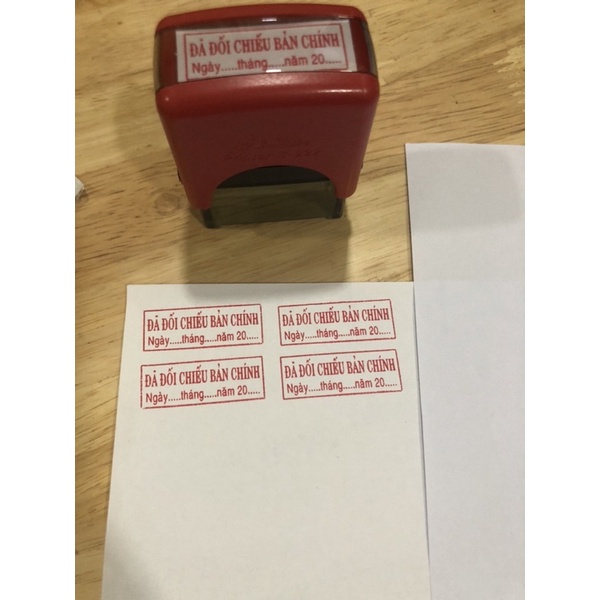 - Con dấu thông dụng đóng ra có nội dung là chữ: Đã Đối Chiếu Bản Chính ( dấu 1 dòng) và Đã Đối Chiếu Bản Chính? Ngày... tháng...năm.... ( dấu 2 dòng). - Thường làm màu mực đỏ, khách muốn màu xanh dường thì inbox shop hoặc ghi chú lúc tạo đơn - Size: 13*37mm Liên hệ: