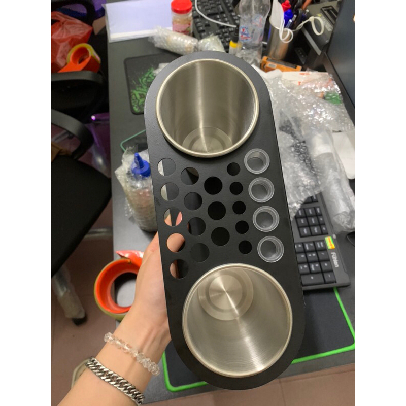 Khay để hũ mực và cốc Chất liệu : Sắt và đc sơn bằng sơn tĩnh điện Làm cho không gian làm việc gọn gàng và độc đáo bắt mắt hơn Đường kính để cốc 72mm