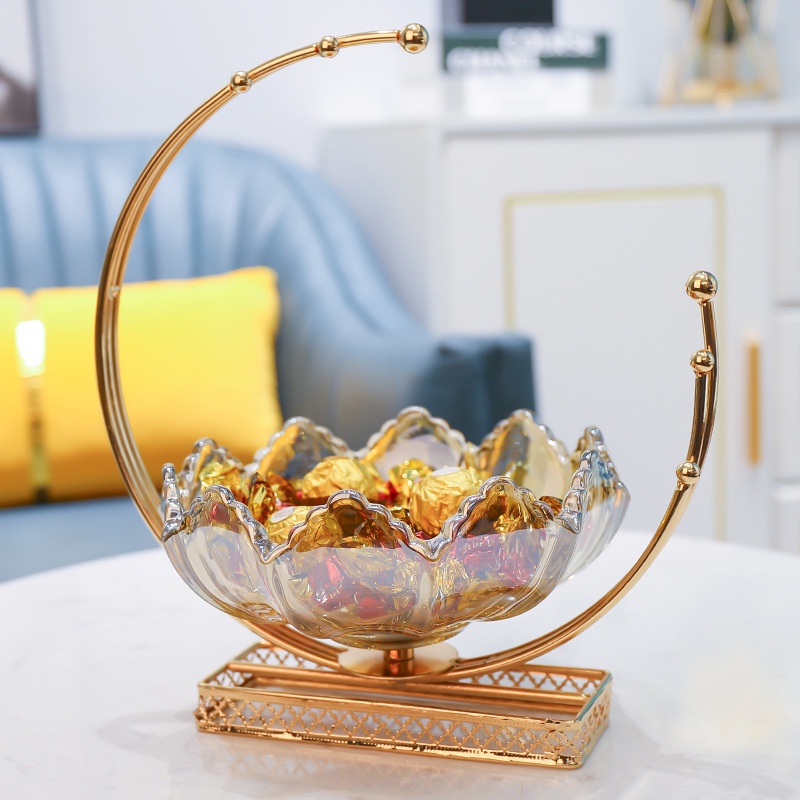 Khay đựng bánh kẹo hoa quả trang trí nhà cửa bằng thủy tinh khung mạ vàng sang trọng