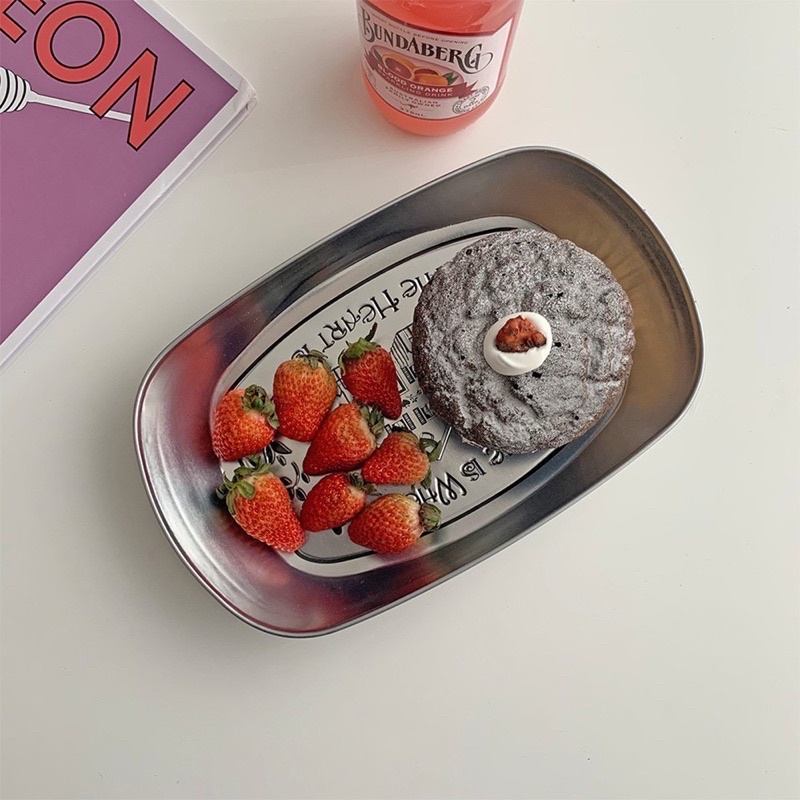 Khay kim loại thiếc đựng đồ ăn nhẹ, bánh ngọt phong cách retro độc đáo