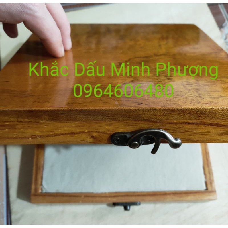 khay mực được làm từ gỗ tự nhiên kích thước 9,5cm x 15,5cm kèm theo một lọ mực cửu long Khi sử dụng in rất sắc nét và có thể đặt cỡ lớn hơn