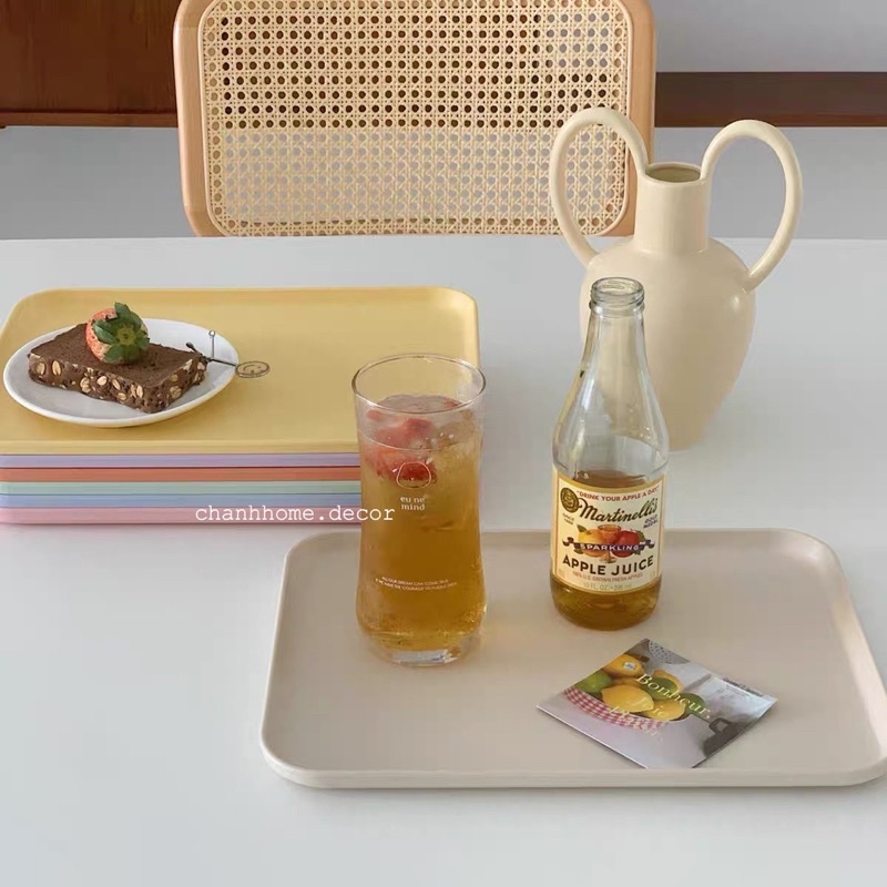 Khay nhựa đựng thức ăn lúa mạch màu Pastel hình chữ nhật, tấm lót bàn ăn đựng dĩa, cốc uống nước |Chanhhome.decor|