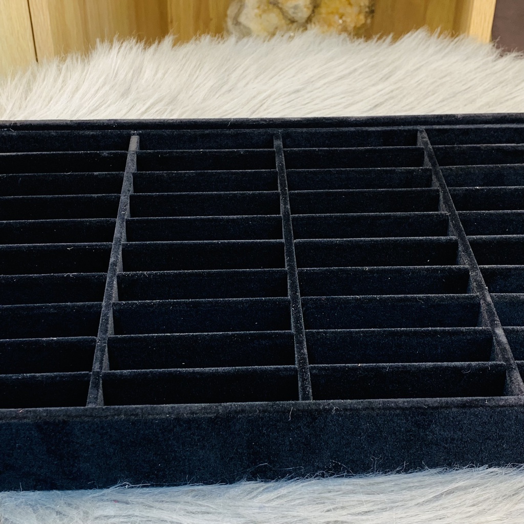 Khay nhung 40 ô đựng trang sức, trưng bày nhẫn, dây chuyền đá phong thủy sang trọng (Không nắp) * THÔNG TIN SẢN PHẨM: - Kích thước: dài 35cm, rộng 24cm, cao 3cm - Chất liệu: Vải nhung bọc xung quanh - Ngoài: khung gỗ - Trong: lớp nhung - Màu sắc: Tùy khách hàng lựa c