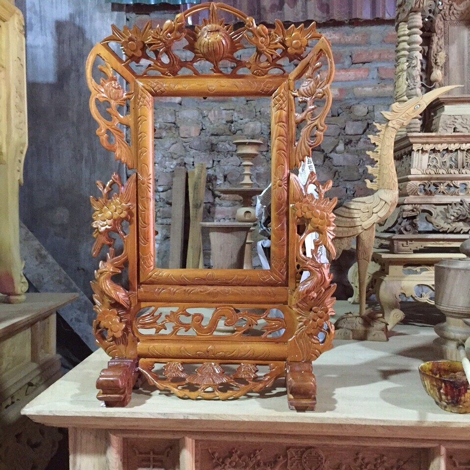 Khung Ảnh Thờ chiện Mai khung đục Gấm gỗ Hương kích thước 20 x 30 cm và 25 x 35 cm đồ dùng phòng thờ