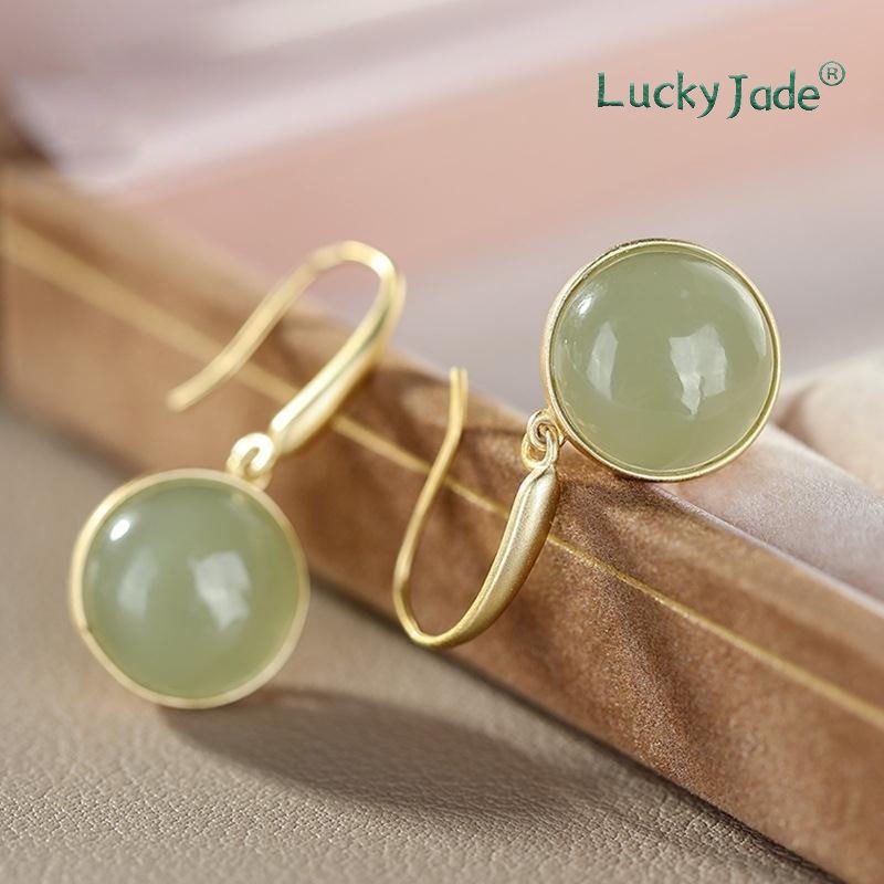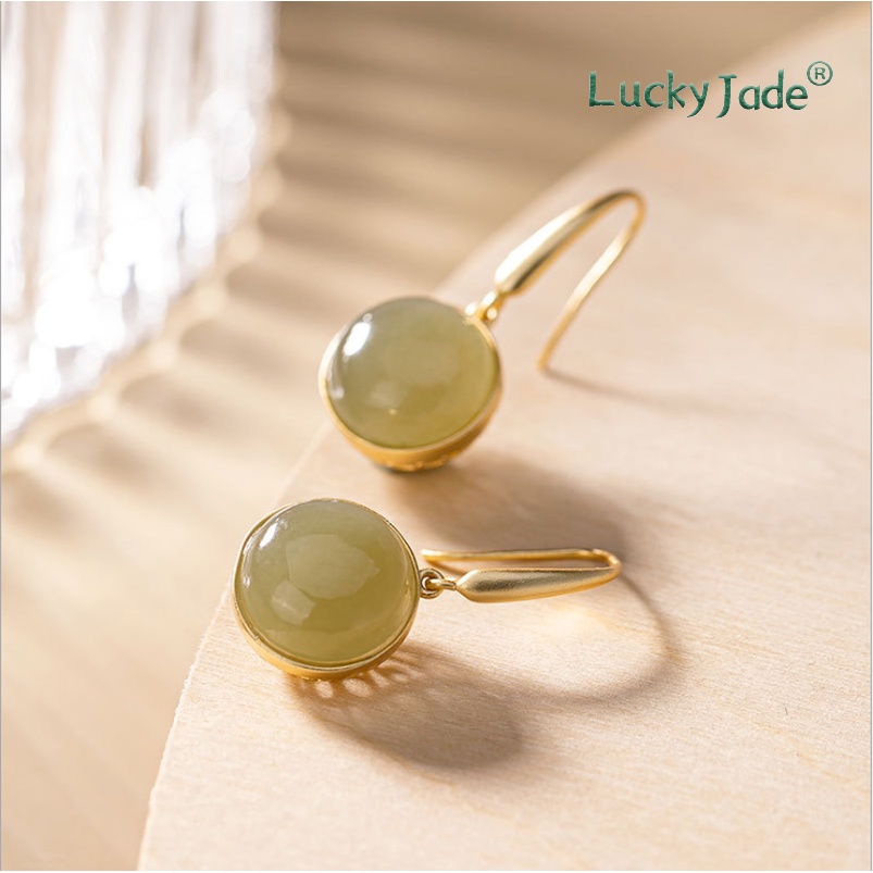 Khuyên Tai Bạc 925 Đính Đá Ngọc Bích Phong Cách Dân Tộc Cổ Điển