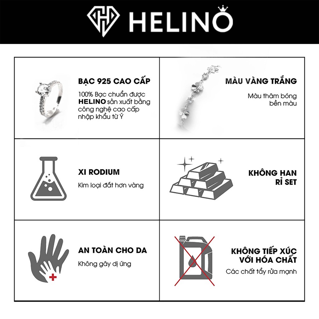 THÔNG TIN SẢN PHẨM: Thương hiệu : HELINO - Brand made in VIETNAM Chất liệu : Bạc S925 (92,5% Bạc và 7,5% hợp kim cao cấp sản xuất theo công nghệ Bạc Ý) LƯU Ý VỀ CÁC SẢN PHẨM - Khách hàng tránh hiểu nhầm Bạc Chuẩn sẽ không bị đen xỉn - Bạc ngoài làm trang