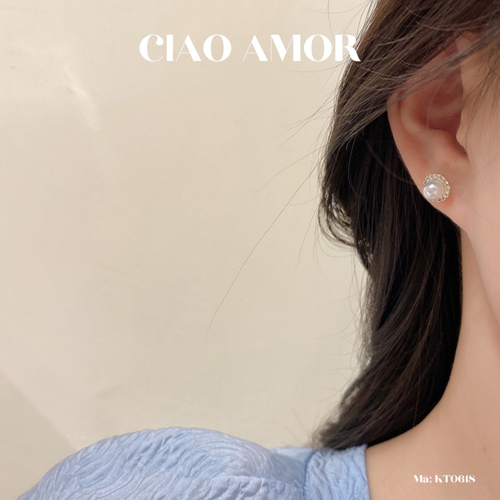Khuyên tai nữ, Bông tai nữ bạc 925 nụ ngọc nhỏ viền đá basic Trang sức Ciao Amor - KT0618