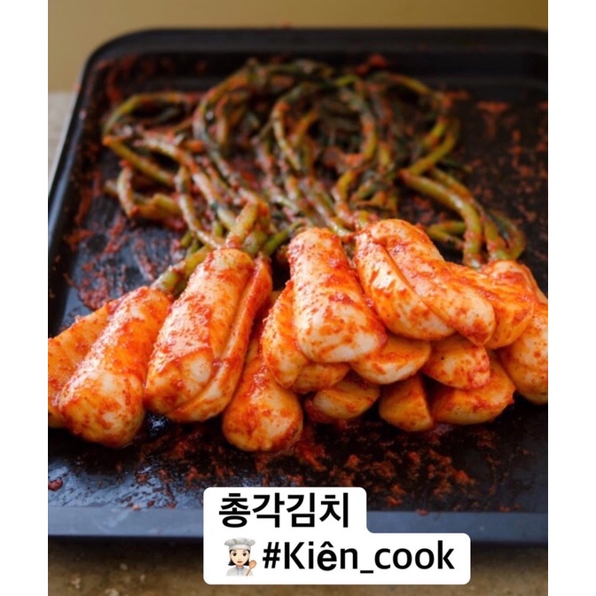 Kim chi củ cải vị ngọt hơi hăng. Ăn kèm với mì, đồ nướng, luộc,... Khác với kim chi cải thảo, kim chi củ cải ăn giòn hơn, vị cũng đặt biệt hơn. Thành phần: cà rốt, củ cải, hẹ, hành tây, gừng, tỏi, ớt bột Hàn Quốc,...và các nguyên phụ liệu vừa đủ. Shop: Nhà Của Milk