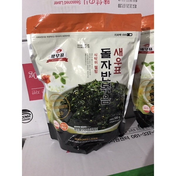 Kim vụn trộn vừng ăn liền Wando 50gr Xuất xứ: Hàn Quốc Khối lượng: 300gr/ gói Hạn sử dụng: 1 năm kể từ ngày sản xuất Thương hiệu: Wando Bảo quản: Nơi khô ráo, thoáng mát. - Lá kim vụn đã tẩm ướp với gia vị, mè rồi rang chín rất ngon miệng và bổ dưỡng, đặc biệt hấp