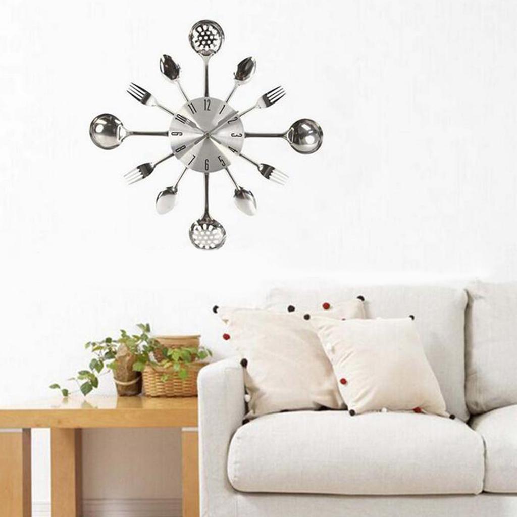 Kitchen Wall Clock 3D Removable Kitchen Spoon Fork Wall Clock Mirror Wall Decal Wall Sticker Room