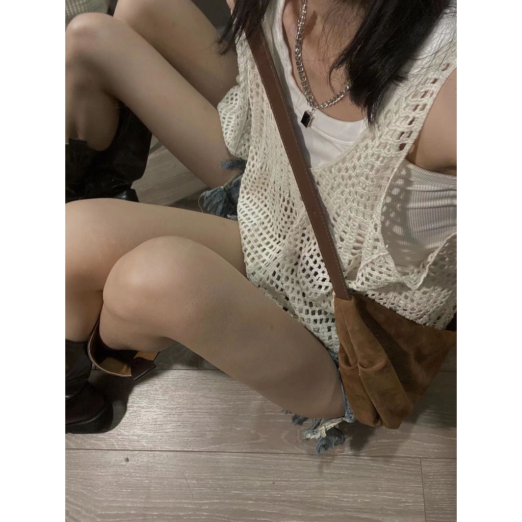 Kumikumi HUANG YOYO Áo Dệt Kim Không Tay Dáng Rộng Khoét Lỗ Thời Trang Mùa Hè Hàn Quốc Dành Cho Nữ 2023 croptop