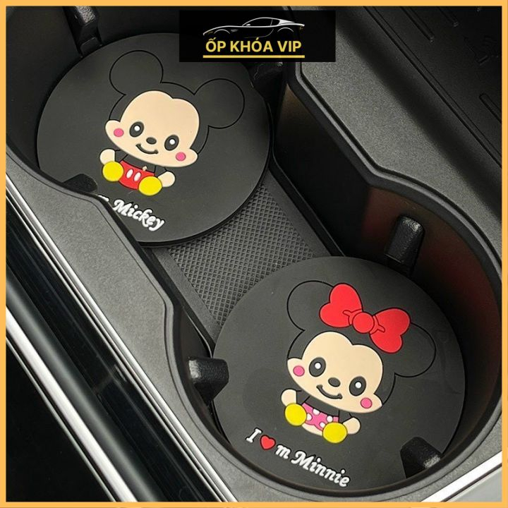 Miếng lót ly ô tô -Lót ly xe hơi nhân vật hoạt hình - Để lót cốc cao su cách nhiệt