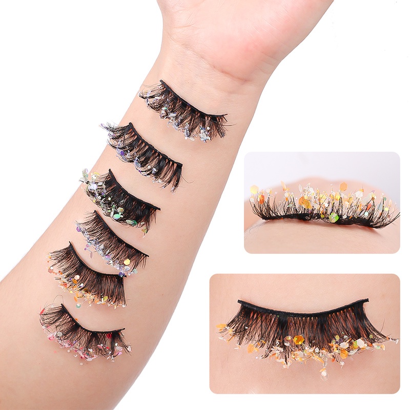 Lông Mi Giả Đính Kim Sa Lục Giác 3D Phát Sáng Độc Đáo