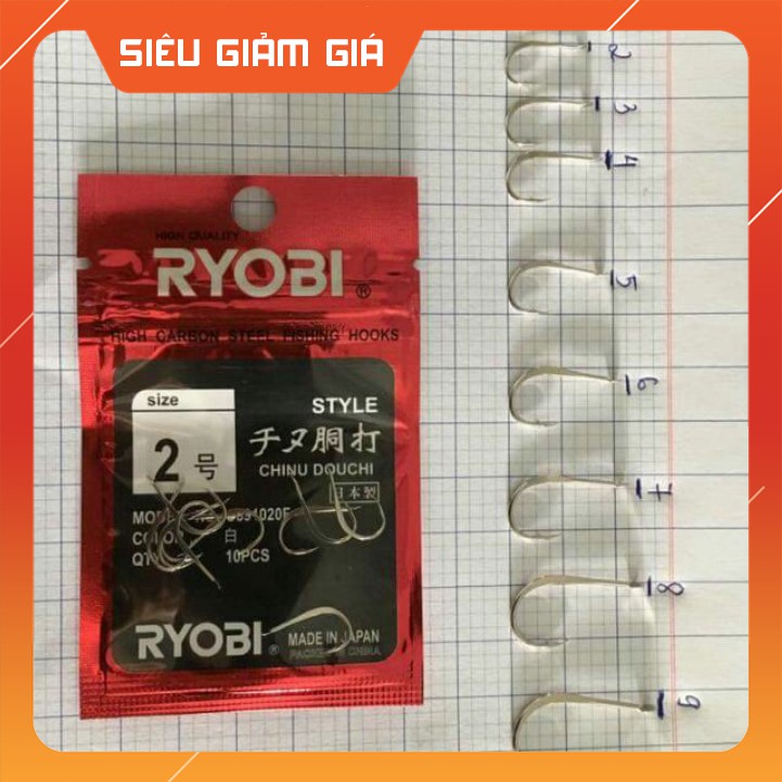 Lưỡi Câu Đơn Ryobi đủ size - ĐỒ CÂU NGỌC HẢI