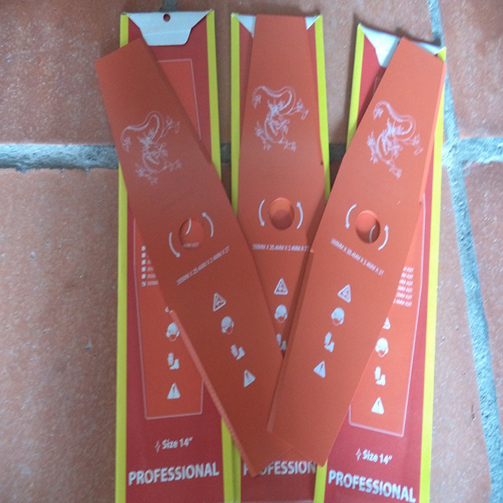 Lưỡi cắt cỏ, lưỡi máy cắt cỏ, lưỡi máy phát cỏ nhật bản( loại vát) Kích thước : 355 mm* 2.4 mm*25.4 mm*2TLưỡi cắt cỏ bằng chất liệu thép cứng và cực kỳ bền có khả năng giúp bạn cắt được những bụi cỏ rậm rạp lớn một cách nhanh và hiệu quả .Một chi tiết được nói tới trê