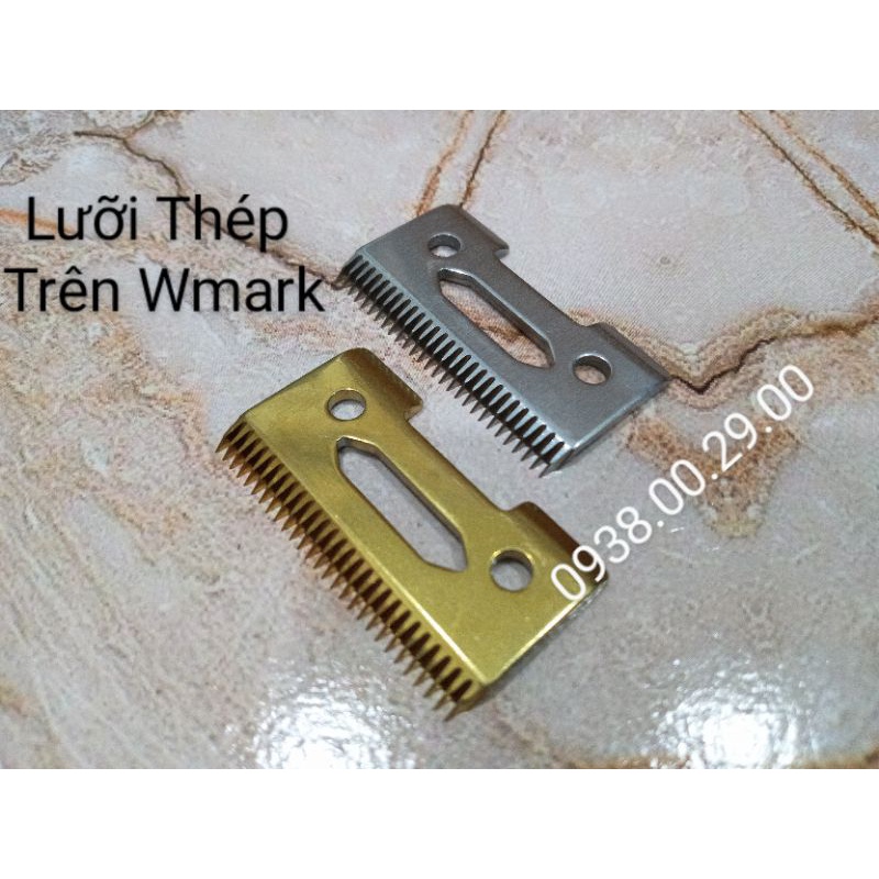- Lưỡi thép chính hãng Wmark Gold và Wmark Silver có thể gắn hầu hết toàn bộ loại tông đơ điện và tông đơ pin các loại như Chaoba, GTS, Kemei, Surker, YBL, Wahl.... - Lưỡi được làm từ loại thép 440c cao cấp có độ cứng tốt cho đường cắt nét, chuẩn và không nhai tóc.