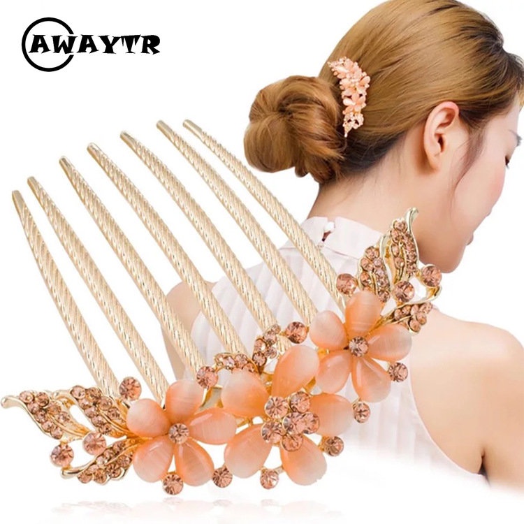 Lược Cài Tóc Bảy Răng Đính Đá Pha Lê Phong Cách Hàn Quốc
