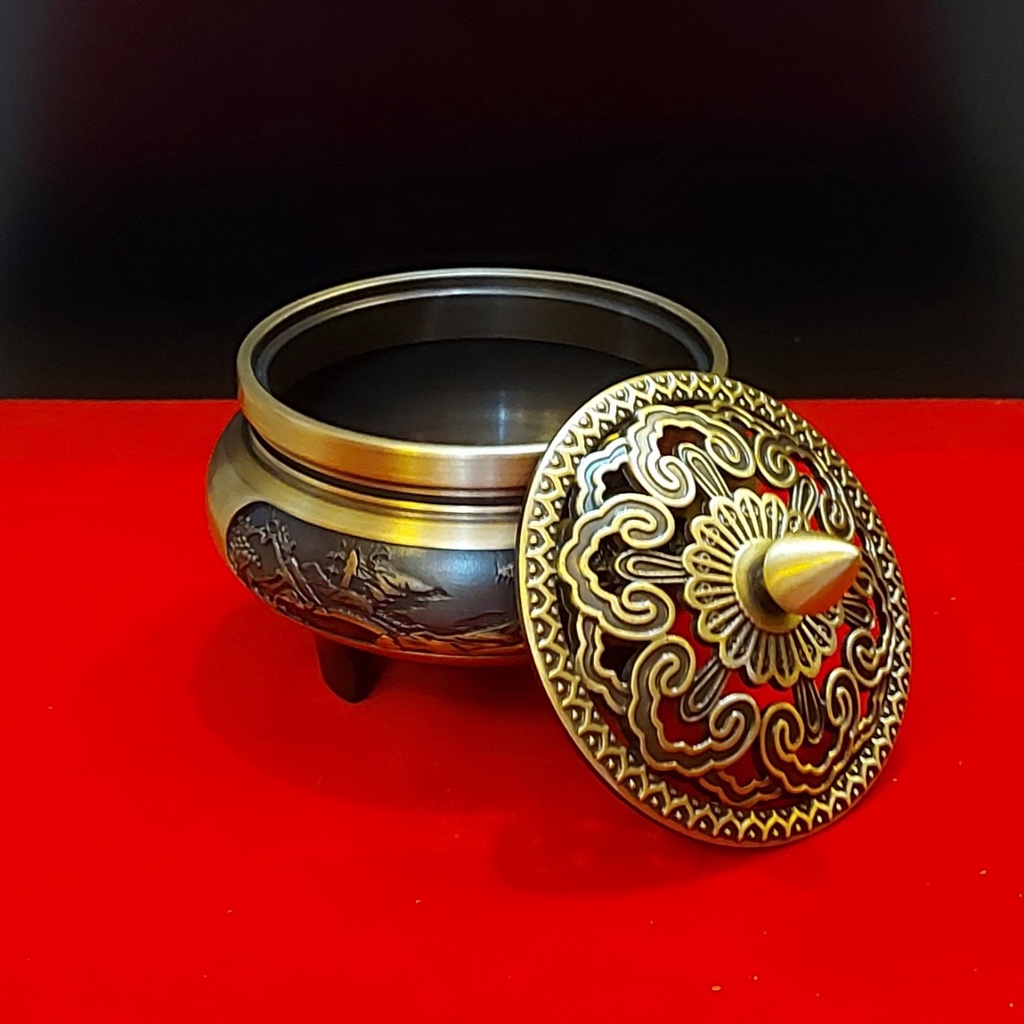 Lư đốt trầm bằng đồng, lư đồng xông trầm 100% đồng nguyên chất, chạm khắc tinh xảo LOẠI 1