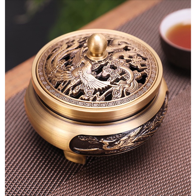 LƯ HƯƠNG XÔNG TRẦM, ĐỐT TRẦM BẰNG ĐỒNG NGUYÊN CHẤT NẮP HÌNH RỒNG NỔI Size to đại