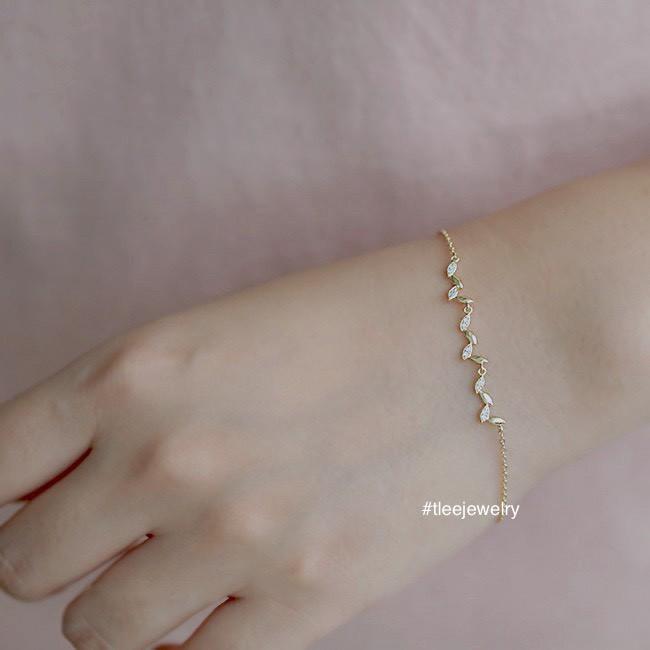 Lắc tay bạc nữ TLEE Foliage lá đính đá nữ tính TleeJewelry LT0121