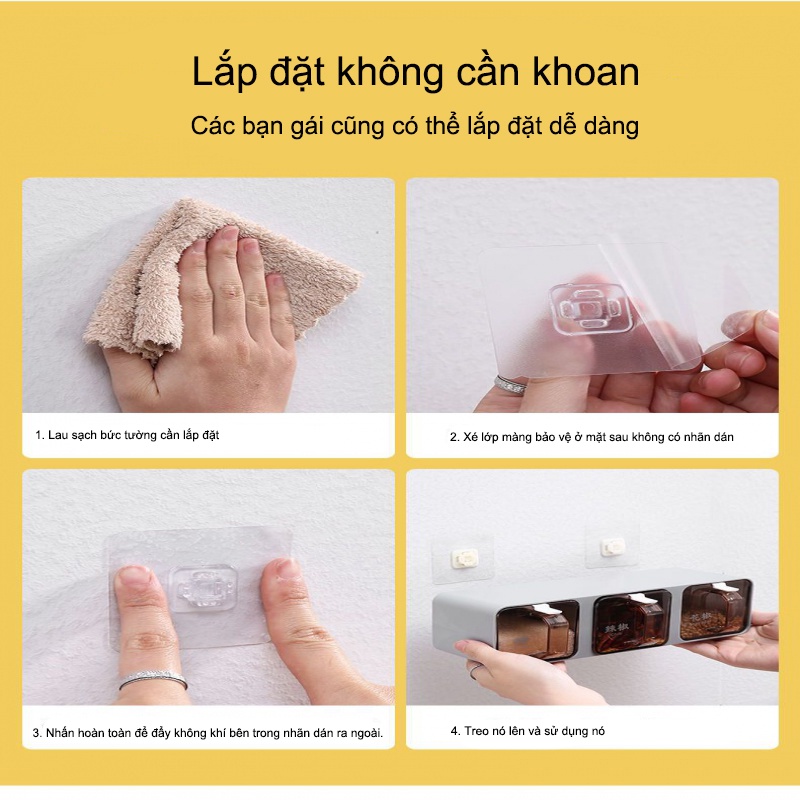 Lắp Ráp Lon Gia Vị Gia Đình/Hộp Gia Vị/Ngăn Kéo Treo Tường Đồ Dùng Nhà Bếp Tích Hợp Nhiều Ngăn Có Thìa Lọ Muối Bột Ngọt
