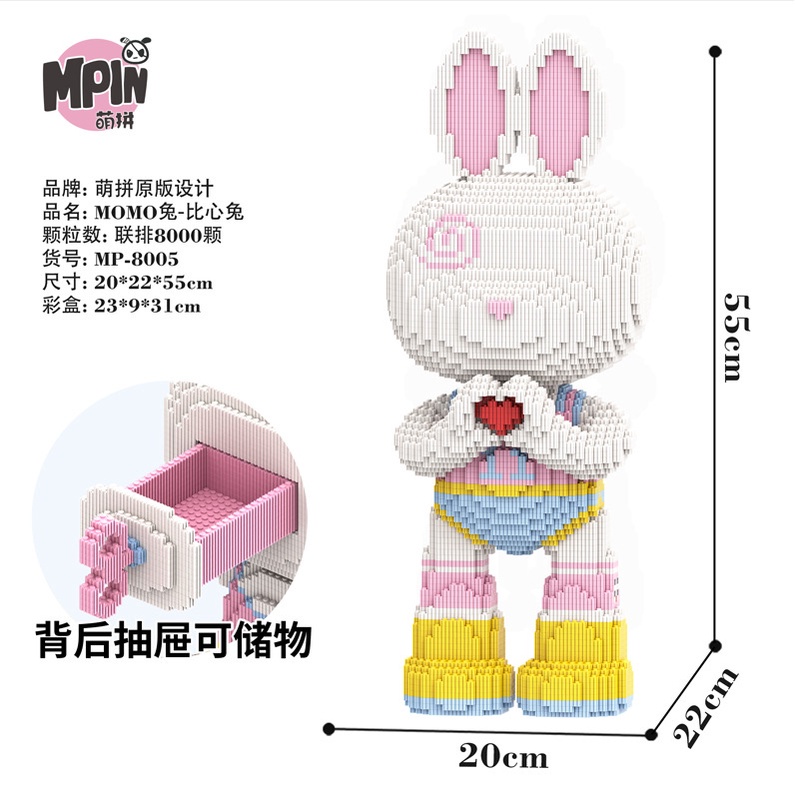 Lắp ráp mô hình le go Gấu Bearbrick MPIN 55cm THỎ Momo trắng tim các mẫu 3D mới nhất cực hót