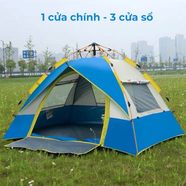Lều cắm trại dã ngoại tự bung 4-5 người 2 cửa 2 lớp thông thoáng Kityy