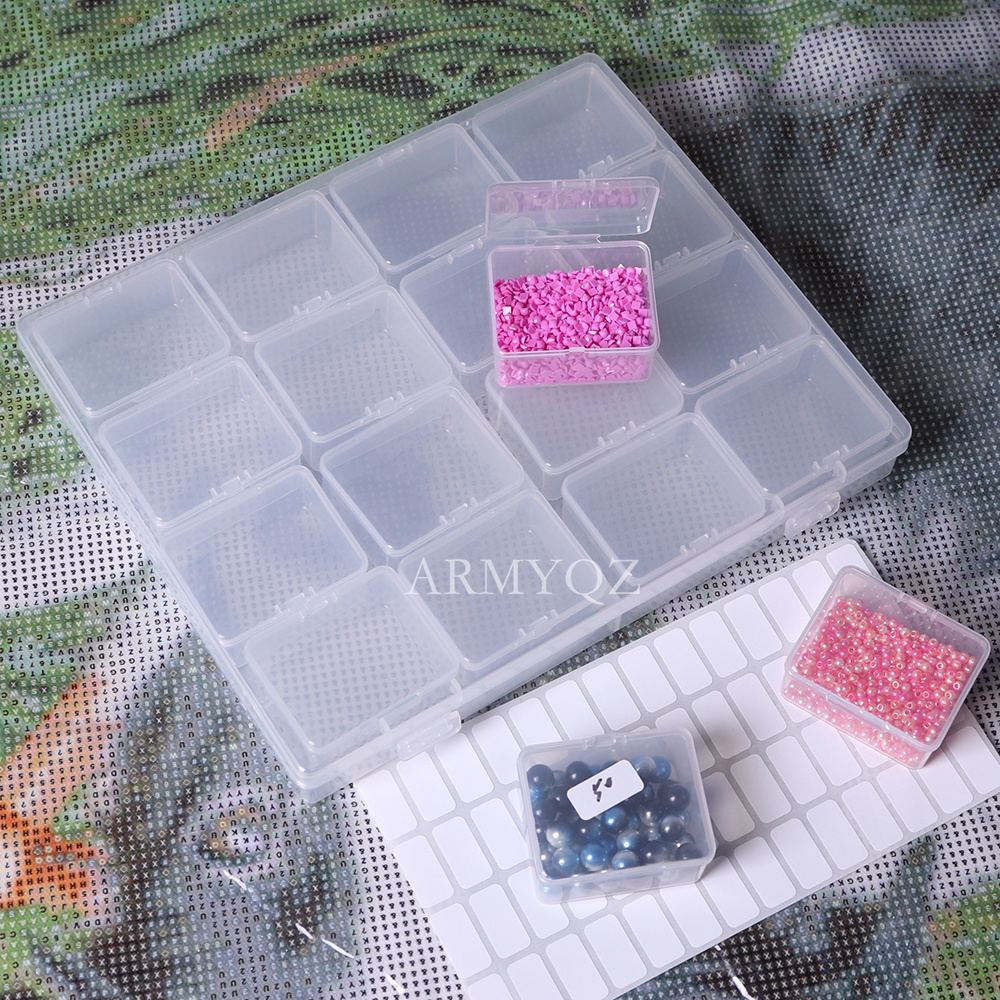 Lọ 8 / 16 / 28 / 56 Lọ Đựng Hạt Cườm Vuông Đính Đá Trang Trí Thủ Công