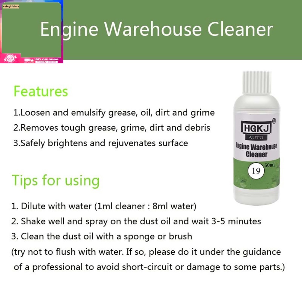 Specifications: The professional grade degreaser is perfect for cleaning engines, machinery, tools, etc. Removes tough grease, grime, dirt and debris. Works fast to loosen and emulsify grease, oil, dirt and grime for easy clean. Super concentrated - can be diluted to desired needs. How to Use: 1. Dilute with water (1ml cleaner : 8ml water). 2. Shake well and spray on the dust oil and wait 3-5 minutes. 3. Clean the dust oil with a sponge or brush.(Try not to flush with water. If so, please do it under the guidance of a professional to avoid short-circuit or damage to some parts.) Item Name: Engine Warehouse Cleaner Capacity: 20/50ML (Optional) Material: Liquid Notes: Due to the light and screen setting difference, the item's color may be slightly different from the pictures. Package Includes: 1 x Engine Warehouse Cleaner
