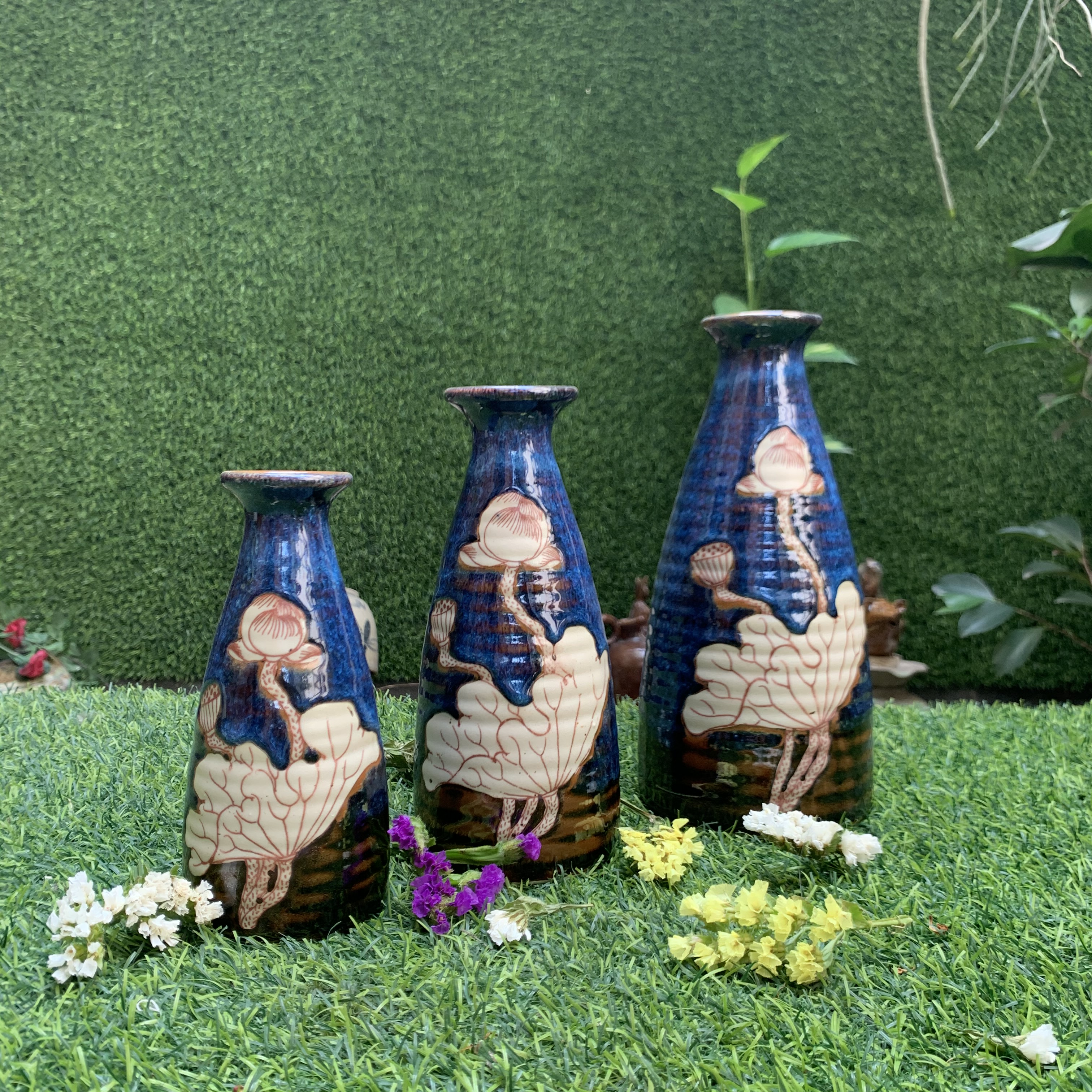 Bình Hoa Lọ Hoa Bát Tràng Cắm Đào Lựu Tuyết Mai men Hỏa Biến Dáng Đùi Dế 35cm