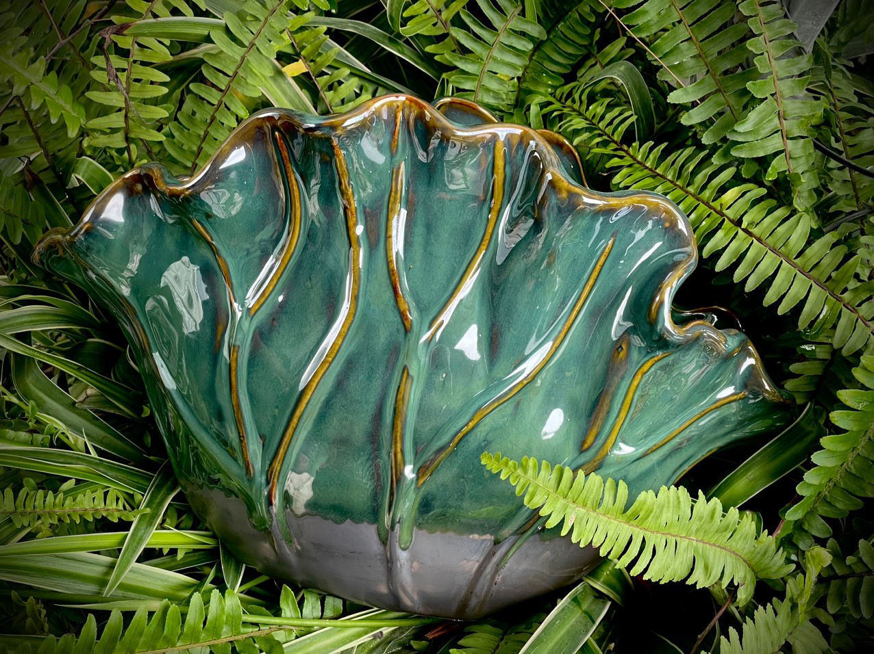 Chiếc lá sen xanh mướt Được tạo nên từ đất Xinh lắm ạ Kích thước : 26 * 32cm Gốm sứ Bát Tràng cao cấp E tặng lưới khi các bác mua bình nhé ạ....