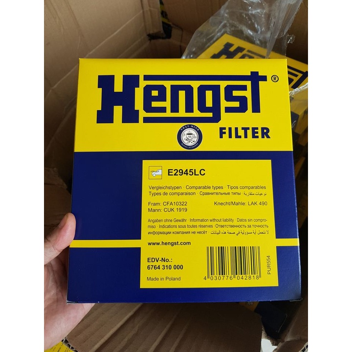 Khác với lọc gió điều hòa thường, lọc gió Hengst dầy dặn hơn và có lớp than hoạt tính nên vừa giúp lọc bụi vừa giúp khử mùi điều hòa. Hàng nhập khẩu từ châu Âu. NM đã về đủ các mã lọc điều hòa than hoạt tính HENGST (Đức) cho các dòng xe thông dụng (trừ mazda, i10, mor