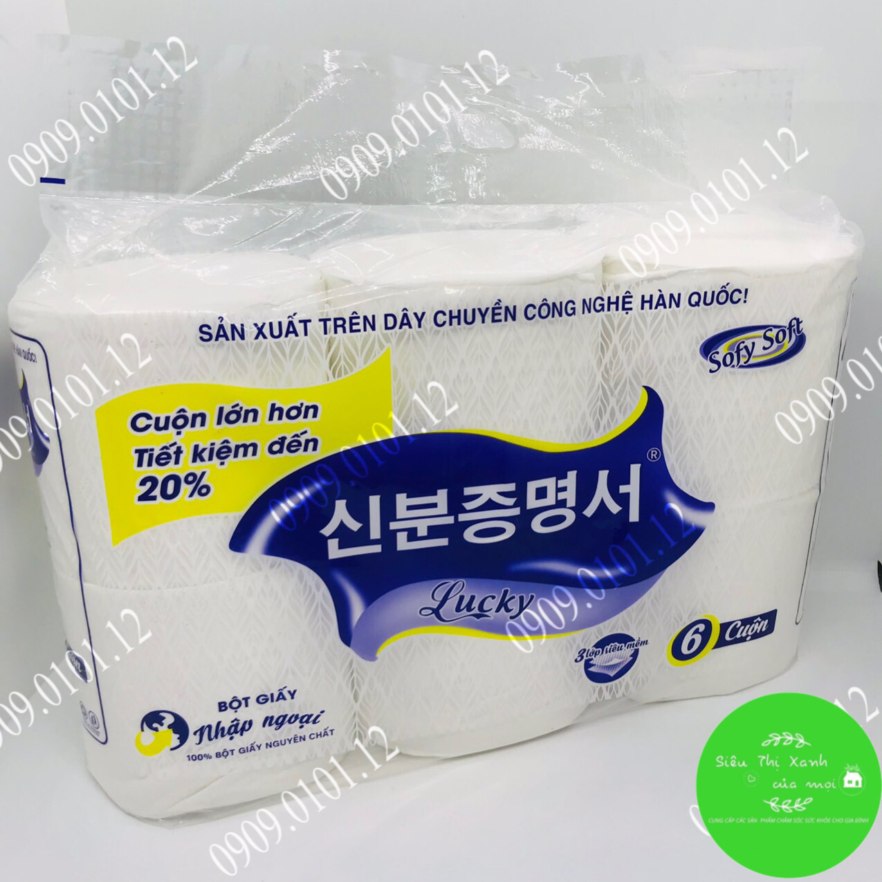 Lốc 6 cuộn khăn giấy vệ sinh Lucky Hàn Quốc không lõi, Giấy vệ sinh Lucky 3 lớp dày min siêu thấm