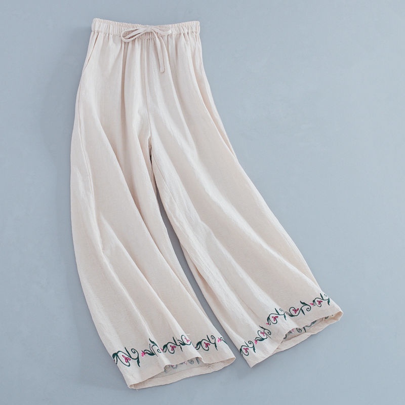 ☻ L O T U S ☻ Quần Ống Rộng Plus Size Thêu Họa Tiết Phong Cách Vintage LFB0193